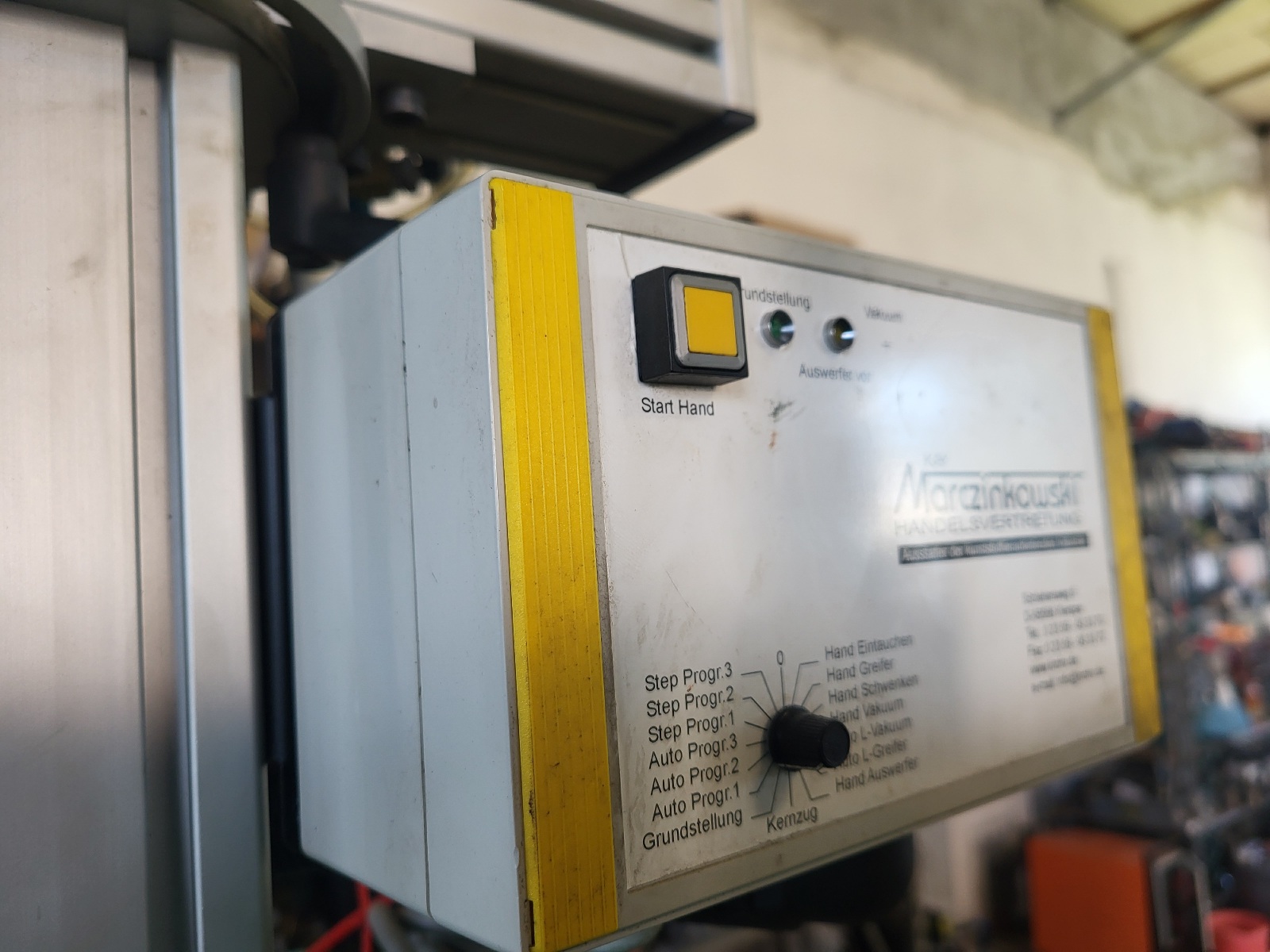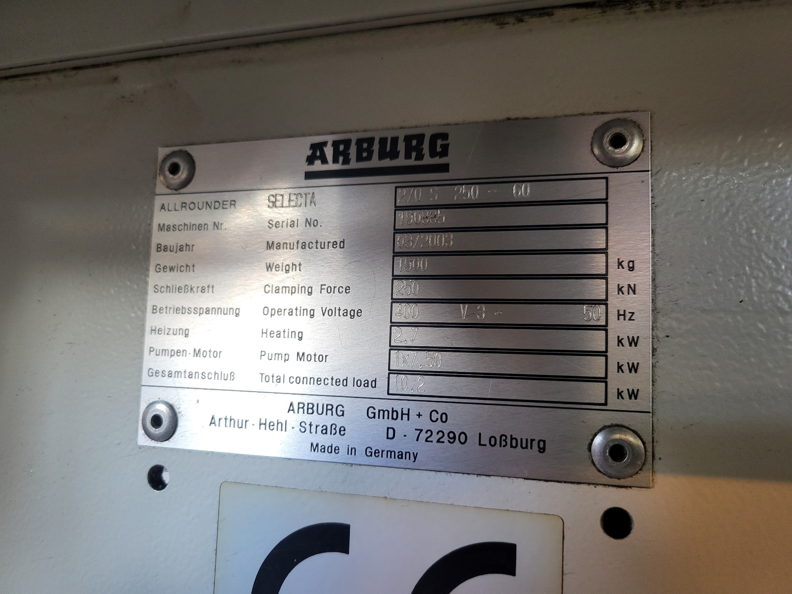 Strona główna / Wtryskarki / Arburg 270 S 250-60 z taśmociągiem i manipulatorem Arburg 270 S 250-60 z taśmociągiem i manipulatorem27500,00 zł Kategoria: Wtryskarki Opis Opis Rok produkcji 2003 Siła zamykania 25 ton Prześwit między kolumnami 270 x 270 mm Średnica ślimaka 25 mm Pojemność wtrysku 39 ccm Gramatura wtrysku 36 gr dla PS Wyposażenie: taśmociąg, manipulator, ciąg rdzeni, euromap Cena netto: 27.500 zł Podobne produkty Pozostałe urządzeniaUrządzenia peryferyjne Maszyna do rozdmuchu z ekstruderem – OBNIŻKA CENY! Wtryskarki Arburg 570 C 2000 – 675/150 Wtryskarki Arburg 320 C 500-100 Selogica Wtryskarki Battenfeld HM 45/130 Unilog B6